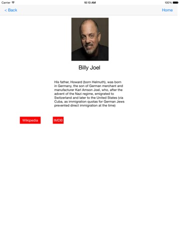 WhoJew? is an app that lets you search over 4000 famous Jewish or partially Jewish personalities and celebrities mostly in the United States. Search by first name or full name. Browse the database to find famous athletes, writers, actors, singers, comedians, poets, economists, scientists, etc. When you find the celebrity youre looking for, click on their name to learn more about him/her. You then have the option to be taken to the individuals Wikipedia or IMDB page.