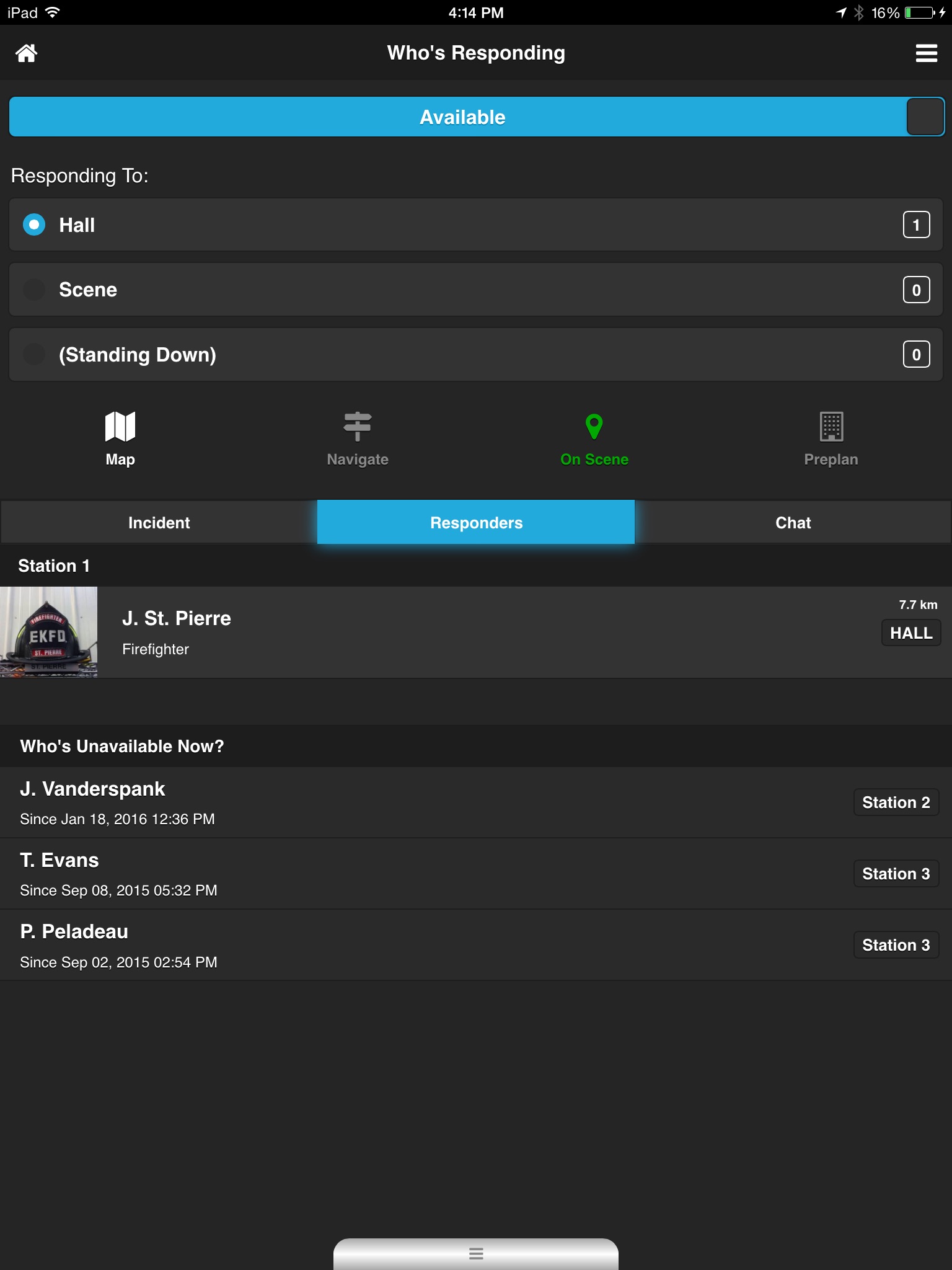 Once your pager has initiated the call you press the “Who’s Responding” App on your phone. This automatically populates a screen within your department showing those who get to the department before you immediately who is on their way. Optionally it can also populate the screen showing your GPS coordinates so your colleagues know how far out you are. It also has a feature that allows a text to be sent and populate the screen within the department sending valuable information to those getting ready to respond.