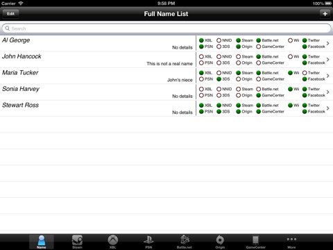 Whos Who? is an app that provides a simple way to remember your friends online pseudonym for all gaming platforms. Cant be bothered to remember who "John_X24748" or"AlienInvasion42" is? Record it down so that the app does the remembering for you!