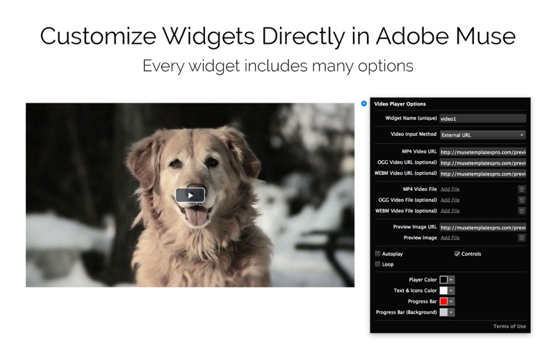 *Adobe Muse CC 2015 or later is required to use the widgets.