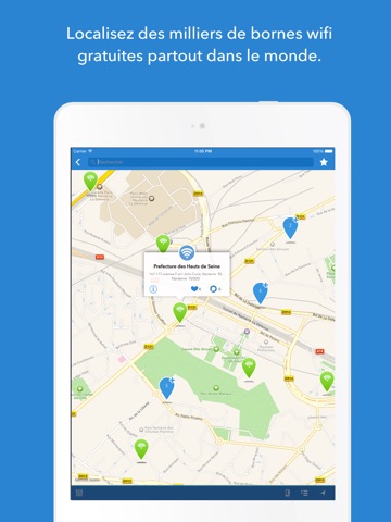 • Affichage de plus de 30 000 réseaux wifi public et gratuits en France
