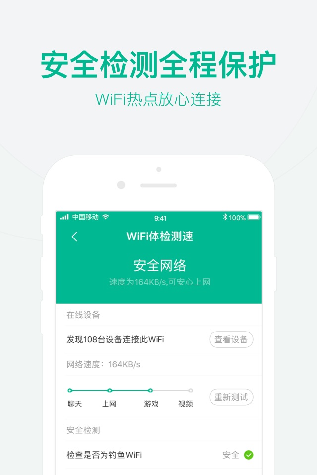 实时监测手机WiFi安全、主动防御风险WiFi,推送可靠安全Wi-Fi,钓鱼网、虚假WiFi通通不用怕,360度防护您的网络安全!