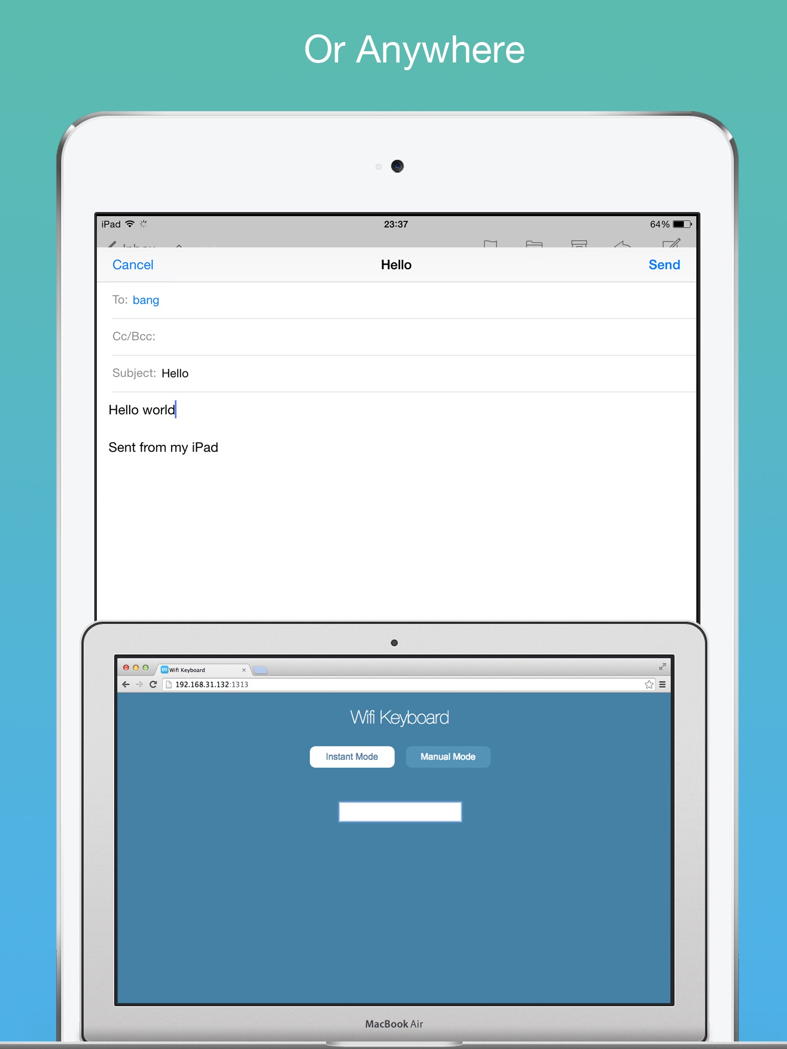 Wifi Keyboard can use your PC/Mac keyboard to type in your iPhone/iPad. You neednt to buy a bluetooth keyboard, just connect your PC/Mac and your iOS device to the same wifi, then enjoy typing.