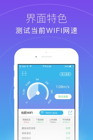WiFi万能助手能有效测试当前网速,安全连接无线热点, WiFi测速,帮你找到网速最快的免费WiFi热点 ,必备的万能WiFi工具。