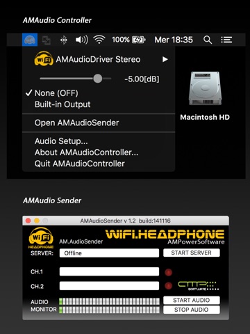 WIFI-HEADPHONE allows you to send the audio from your Mac or PC to iPhone or iPad using them as a wireless headset.