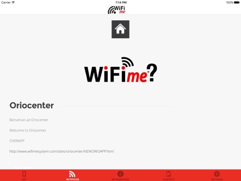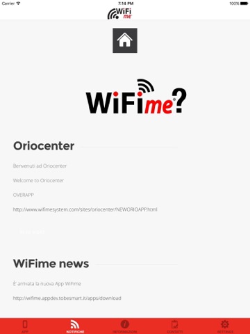 LApp di WiFime che ti tiene informato circa le novità e le evoluzioni dellinnovativo sistema brevettato che raggiunge i tuoi clienti su smartphone.