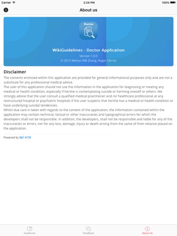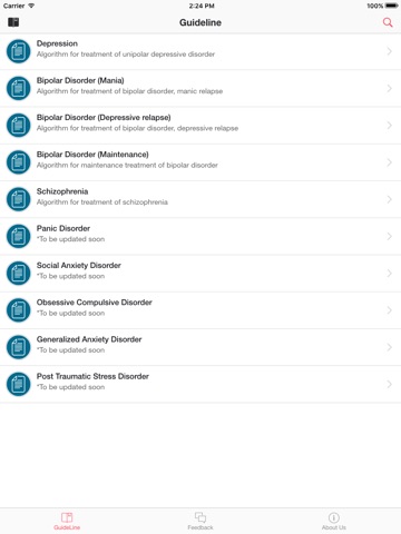 The current smartphone application aims to provide clinicians with updated treatment algorithms and guidelines for the treatment of common mental health disorders. This is meant to be a quick reference for clinicians. Clinicians are still encouraged to stay updated and keep themselves up to date with the recommendations from their respective Ministry of Health and governmental organisations.
