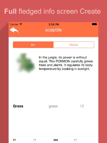 Has full Pokemon profile which includes Details, Type , Attack etc.