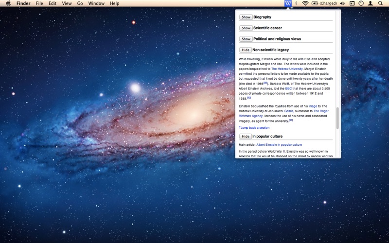 WikiPedia is now right under your fingers. You dont have to launch any Web Browser and/or wait them to load!
