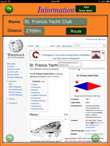 •Wiki map lets you see Wikipedia articles around your point of Interest.