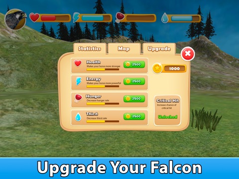 Hunt for birds and animals, live the life of the falcon. Play bird of prey quests or survival mode. It is up to you - beat other falcon or invite it to your bird of prey family. Meet other falcon, breed a new bird. Survival in the simulator is hard - so, maintain your energy - and explore the wild world as a bird of prey with our falcon survival simulator.