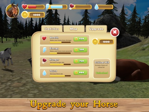 Live the life of the wild animal. Ride across lovely landscapes. Complete quests. Find a mate and breed a foal. Develop a survival strategy against wild and farm animals. Levelup a horse to improve survival skills.