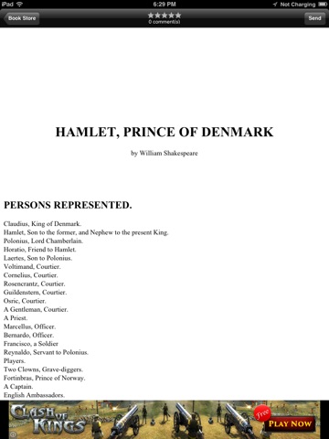 This app is a compilation of William Shakespears works including Hamlet, Romeo and Juliet, Macbeth, King Lear, Othello, A Midsummer Nights Dream, The Merchant of Venice, The Sonnets, etc.