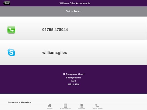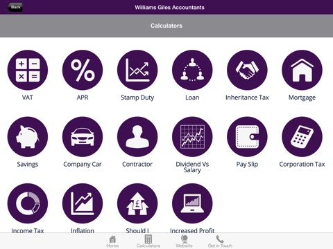 You can also get instant access to the latest business and personal accountancy facts, dates and calculators. Using the latest technology, the ‘News’ section will be updated directly by us, so you get the very latest news, views and offers from Williams Giles Accountants - in real time, all through your App.