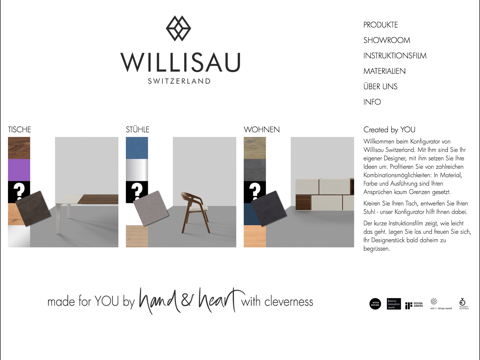 Endlich – Willkommen in Ihrem Designatelier! Digitales Hightech macht Sie zum Designer. Mit der Willisau Switzerland-App kreieren Sie Ihr ganz persönliches Designerstück. Mit perfekt simulierten Materialtexturen konfigurieren Sie in nahezu echter Darstellung Ihr Wunsch-Möbel und machen es in verblüffend echter Visualisierung im eigenen Raum erlebbar. Via Augmented-Reality-Technology steht das auch prompt in den eigenen vier Wänden. Oder im zukünftigen Daheim: Im 3D-Showroom integrieren Sie Ihr Möbel in den aktuellen oder geplanten Grundriss, setzen Fenster und Türen und verschaffen sich einen Eindruck über die Dimensionen.