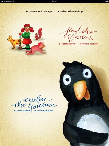 As opposed to most of the apps and software solutions for children today, we deliberately focused on a very natural and real adaption of the ,Wimmelpictures‘. The illustrations in the app come from the Augsburg-based illustrator Martin Hartmann. They all have been drawn and colored by hand - quite the old-fashioned way. Computers were only used for the finishing process, and to eventually transfer the application to the iPad.