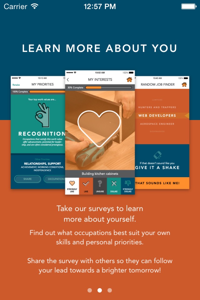 When students complete an Interest or Work Priorities survey they will be provided with a filterable list of occupations that best match their results.