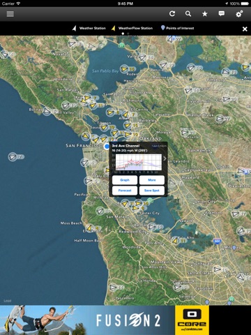 - Neighborhood weather observations from proprietary Tempest Weather Systems along with all public domain reports (NOAA, NWS, METAR, ASOS, CWOP) including all major airports creating over 125,000 unique stations in one focused wind app.