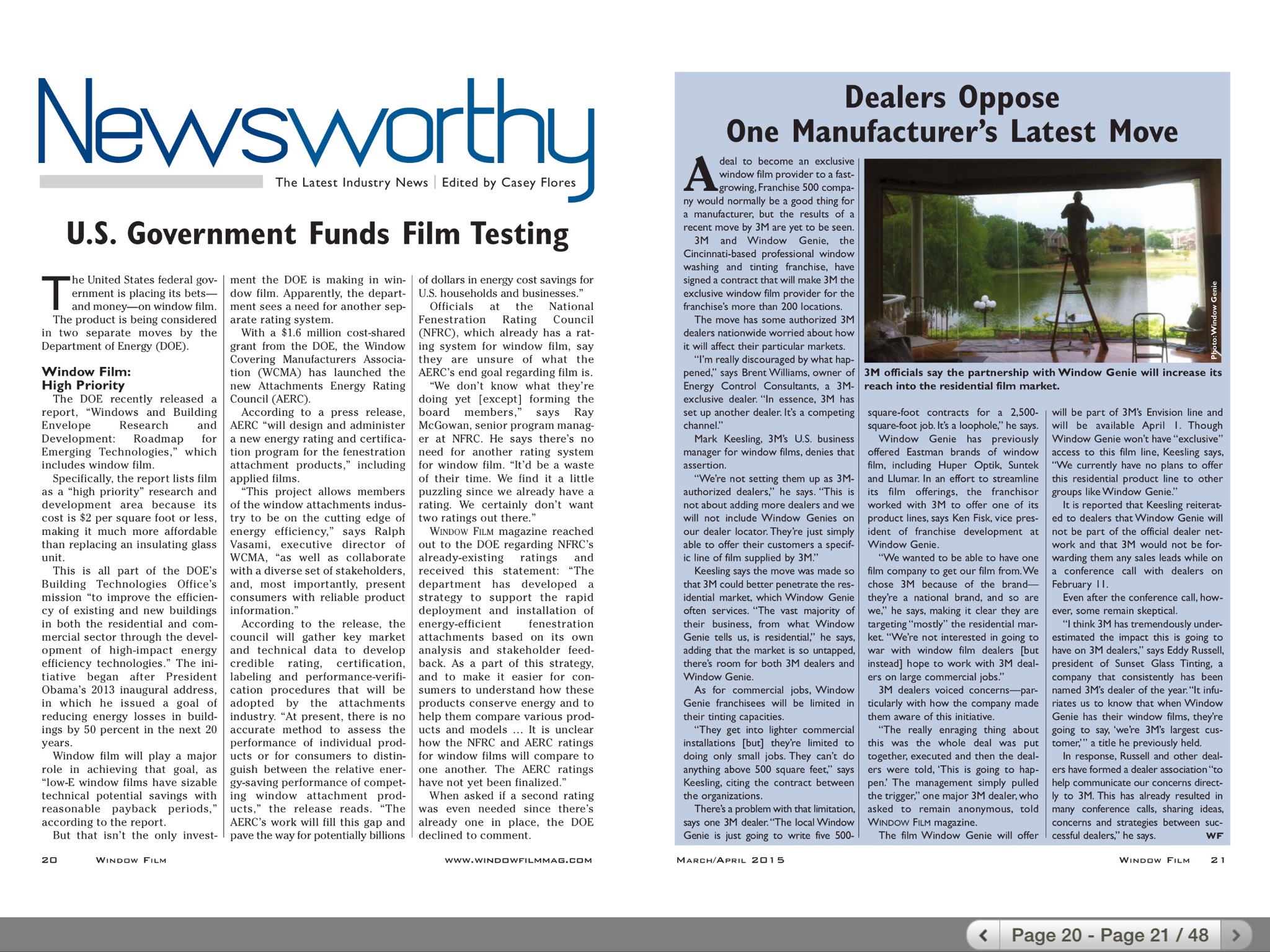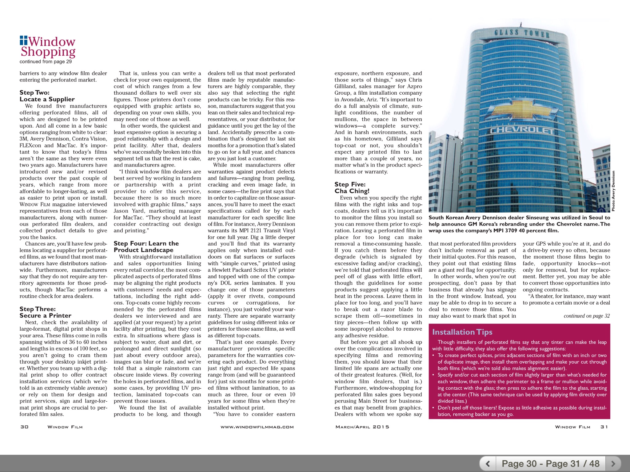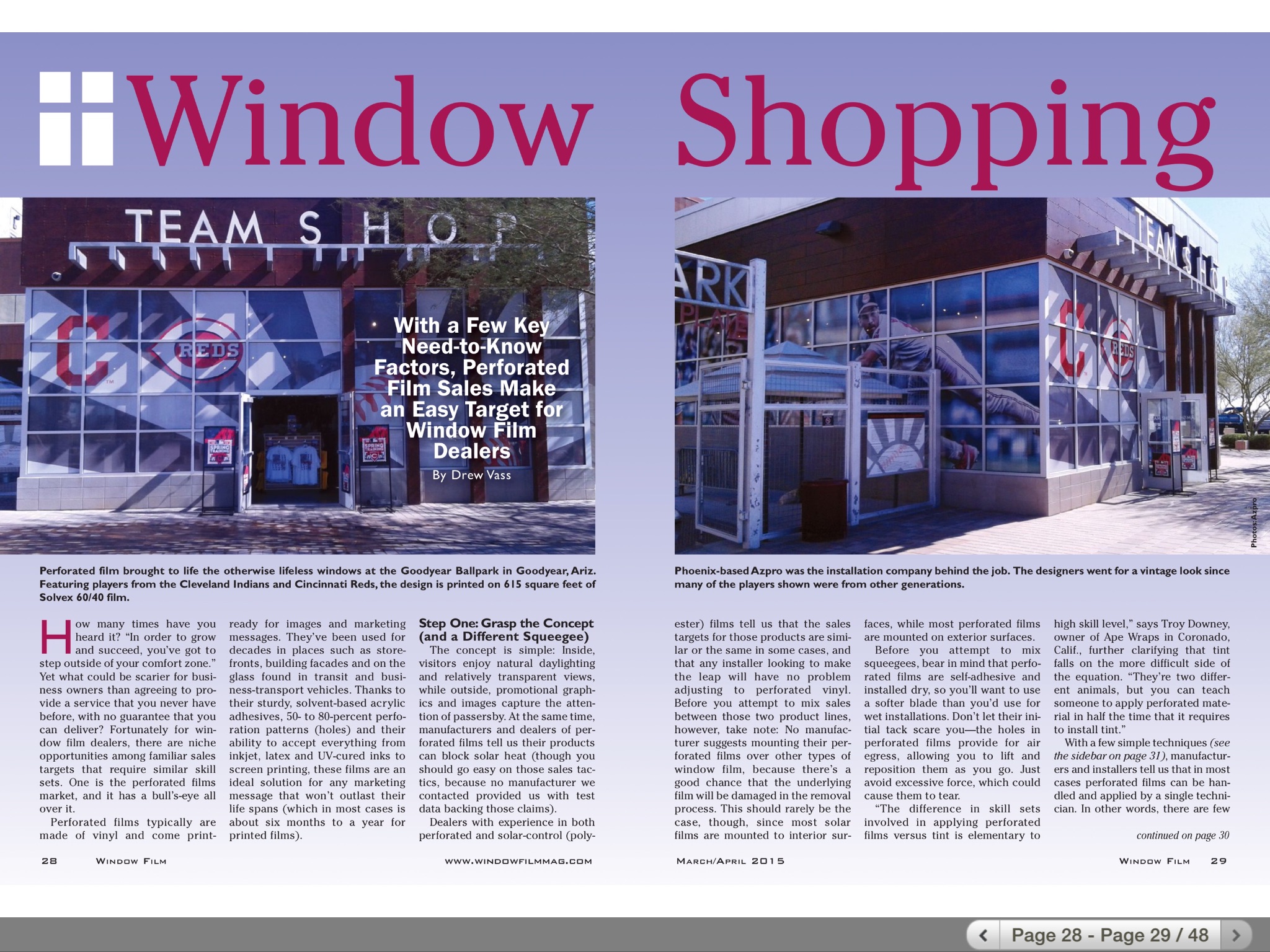 WINDOW FILM magazine serves the entire film industry, providing news on: automotive, paint protection, security, decorative and architectural films. WINDOW FILM also provides a weekly e-newsletter, Focus on Film. The magazine manages the International Window Film Conference and Tint-Off™, where attendees can view seminars, products and compete in Tint-Off competitions. For a free subscription or to learn more, visit www.windowfilmmag.com. Bi-monthly video newscasts of FILM’d are available for view on the site or on YouTube Channel WindowFilmMag.