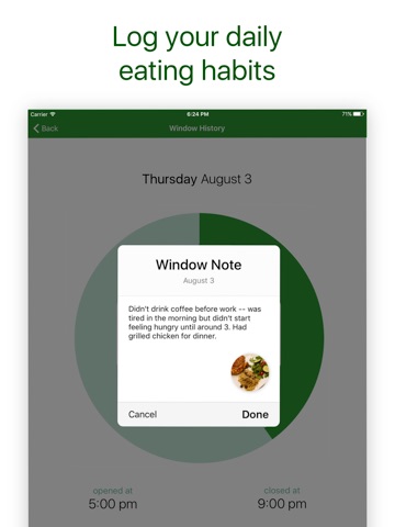 Intermittent fasting is a popular eating pattern that can help you lose weight and feel healthier. Window will help you do it confidently – the right way. Track your fasting and eating, set weight loss goals and monitor them, track your water consumption, and get healthy insights from nutritionists. Window has everything you need (and more) to create a healthier lifestyle!