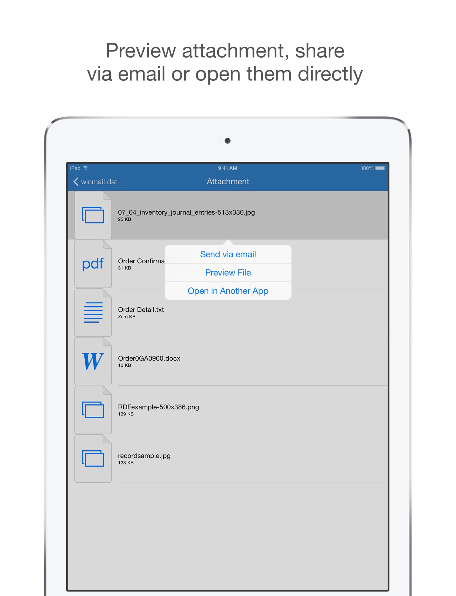 Winmail Opener helps you instantly open and view winmail.dat attachment.