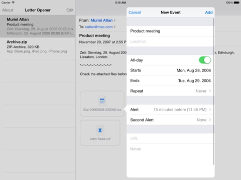 - Open Winmail.dat files and convert appointments, notes, contacts etc. to iOS native formats.