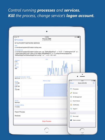 Now, with this app, your iPhone/iPad becomes full-featured PowerShell client with cool script autocompletion, detailed cmdlet help, native prompts, color highlighting and more. All communication is SSL encrypted and proxy-friendly.
