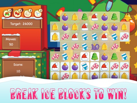 Swipe to match candy canes, Santa-Claus hats, and more in this adorable, winter-themed PUZZLER!