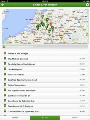 De WinTree® Relatie App geeft snel inzicht in uw relatiebestand via tablet of smartphone. Bent u veel op reis en wilt u diverse bezoeken combineren? Dan is de App een uitkomst. U zoekt simpelweg de gegevens op van de relatie die u wilt bezoeken en krijgt een overzicht op de kaart welke relaties in de buurt zitten. Op het moment dat u verder wilt reizen naar de volgende relatie dan laat de App u zien welke route u het beste kunt volgen. U kunt met de WinTree Relatie App. door één druk op de knop uw relatie bellen om ze te informeren over uw bezoek.