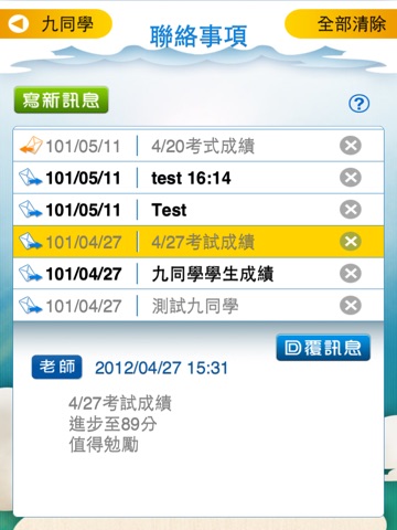 聯絡事項: 老師可透過本功能向您報告孩子的學習情況。您如果有事情需要與老師溝通,亦可使用本功能予老師表達意見。