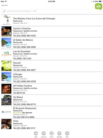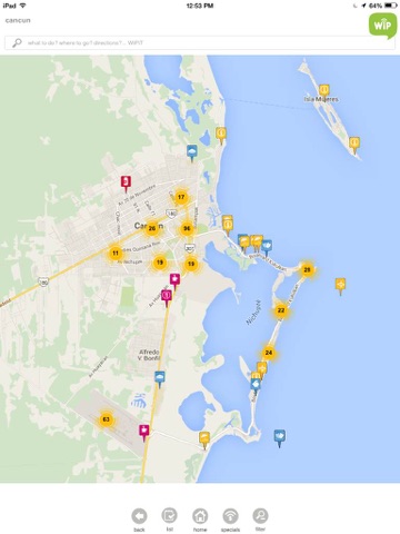 WiP CUN includes over 500 points of interest in Cancun & Riviera Maya each one of them located at its exact position in a dynamic map of the area with geo-location functionality included.