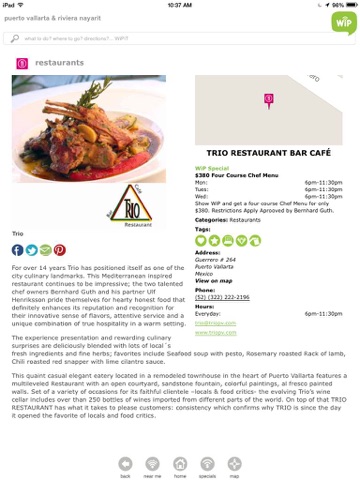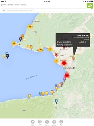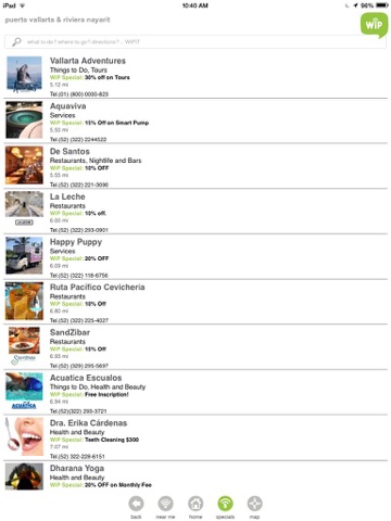 WiP-PVR Live includes over 500 points of interest in Puerto Vallarta and Riviera Nayarit, each one of them located at its exact position in a dynamic map of the area with geo-location functionality included.