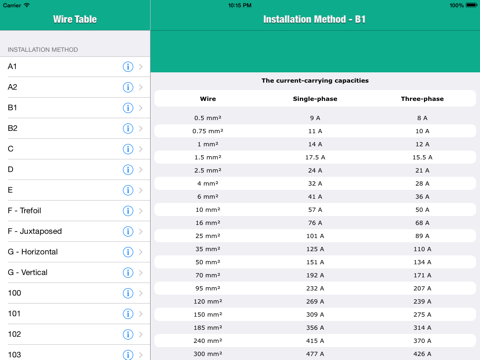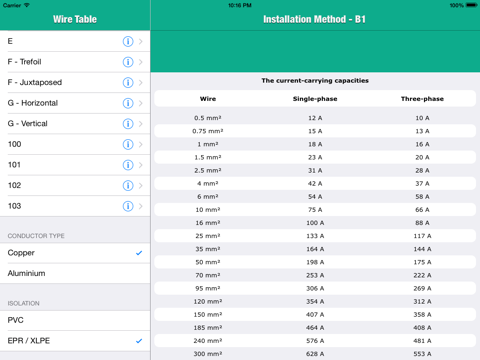 Very easy to use. Just select installation method type and see the conductor table.