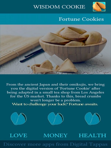 Can you try to tear just one cookie up? If you want to increase your wisdom, now try with three different categories: love, money and health. Fortune cookies made a journey from the deepest Japan to USA and from there have been brought to you within this useful app.