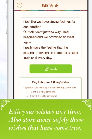 • Create your very own "wish" (from approximately 200 prepared sample texts).