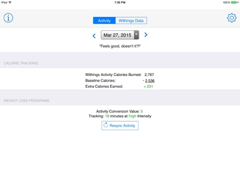 Who doesnt love tracking fitness activity? If you have a Withings Pulse tracker and are into weight loss and exercising this app is for you! WitFitWatchr combines Withingss daily calorie tracking feature with scientific formulas, motivating you to lose weight, earn extra calories, and achieve your weight loss goals.