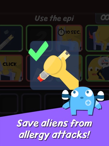 Learn about food allergies while playing. Communicate effectively to learn whether aliens have any food allergies, recognize ingredients in the foods you serve and strategically plan your menu to serve a wide-range of aliens. Recognize when aliens are having allergic reactions and quickly call for help to save them! Learn the proper steps to use an epinephrine auto-injector, also known as epi-pen, to save the lives of aliens who have severe allergic reactions. Educational content developed and approved by allergists from Boston Children’s Hospital and Harvard Vanguard.