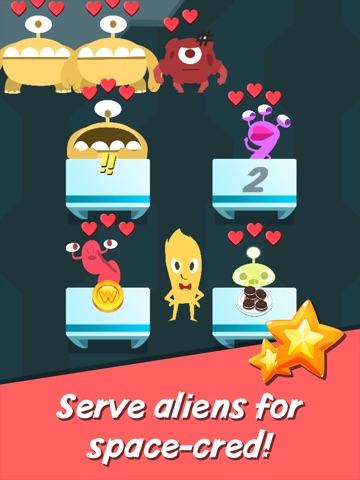 As you gain recognition, you will receive supply drops for your diner with new foods, unique alien customers and cool upgrades. Speedily serve your aliens, avoiding food allergies, to keep the planet’s only diner in business and avoid the wrath of hangry aliens! The better service you provide, the more space-cred you earn which will help you get your stars back. Earn all SIX stars!