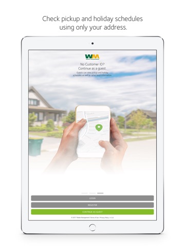 The My WM mobile app makes it easy to manage accounts on the go. Getting started is easy and you can log in with your wm.com email and password. If you haven’t signed-up for a My WM online account yet you can complete first-time registration through the app. The My WM app allows you to: