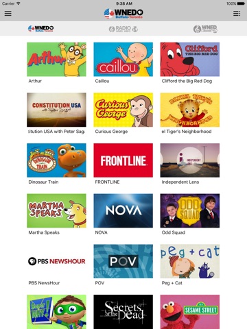 The WNED-TV App allows you to watch all of WNED-TV’s programming. It provides On-Demand content of all your favorite shows, live streaming of the radio channels, PBS Kids! content with parental controls, reminders to alert you when your favorite show is on, easy access to the live Radio and TV program schedule plus the ability to explore additional content!
