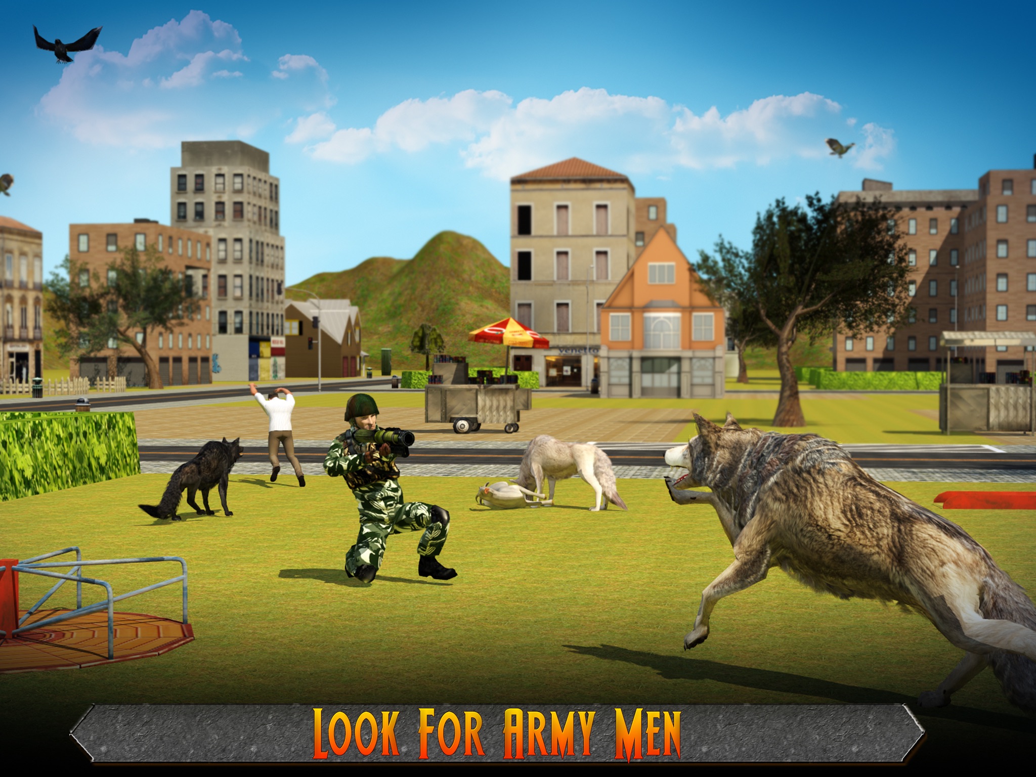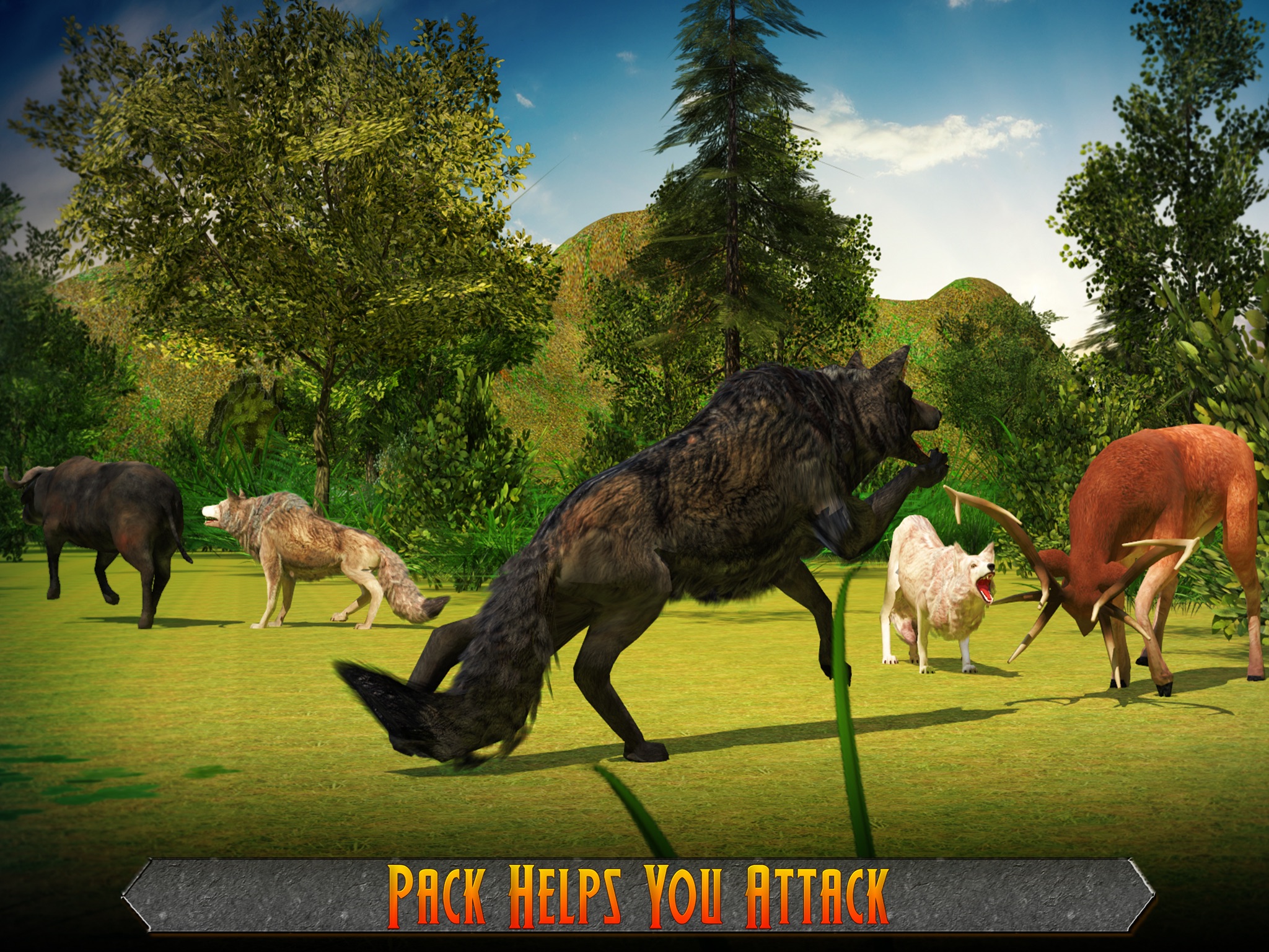 You are a formidable alpha wolf leading a pack of mighty comrades! The humans have done you an injustice by snatching your territory! What will you do? Demolish them! Hunt animals in the forest and right next door, frighten humans out of their wits. Pounce and attack, hunt and kill, grab and devour! The city is your playground, and your fellow animals and humans become your prey. Sharpen those enlarged canines and get ready to take revenge! Don’t let anyone--whether hunters or soldiers--get in the way of your survival in a beautiful 3D environment. Locate your prey using the radar and attack wildly. Unlock more powerful wolfs as you progress through the game and change your wolf skin if you want.