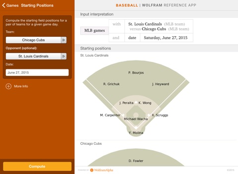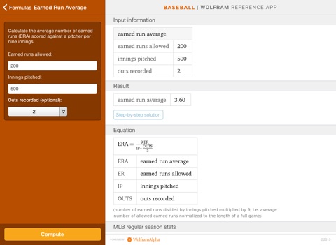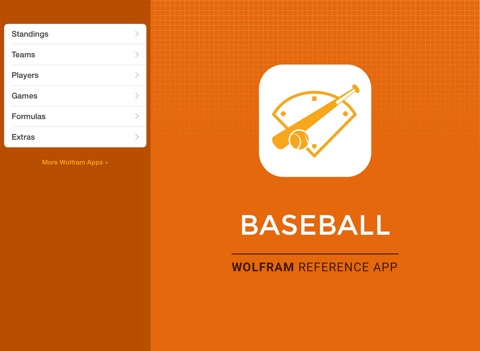 The Wolfram Pro Baseball Stats Reference App draws on the computational power of Wolfram|Alphas supercomputers over a 3G, 4G, or Wi-Fi connection.