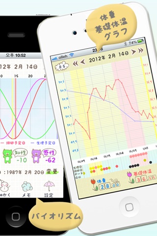 体温と体重の記録→グラフ表示が出来ます。 この手のアプリをいくつか試しましたが、体重/体温の両方をグラフ表示できるアプリは、ほとんどが会員登録した上でWeb上に記録しなくてはいけないものばかりでした。 このアプリはネットに繋がなくても利用出来るので、海外旅行中でもきちんと記録できます! これがこのアプリの一番の特徴だと思います。 また、他のアプリは記録が1年位しか残せないのに対して、このアプリはGoogleカレンダーにインポート/エクスポートができます! なので、アプリのトラブルで記録が消えた〜となることがないと思います。 見た目も3色のテーマから選べ可愛いです。また細かいことですが、 アプリのアイコンが、整理周期管理してます!って感じのアイコンではないのも良いです。 ガールズなんちゃらのようなアイコンをホーム画面に置いておきたくないので。このアプリのアイコンは「それっぽくなく」可愛い所が素晴らしいと思います。 トータルで、素晴らしいアプリです♡