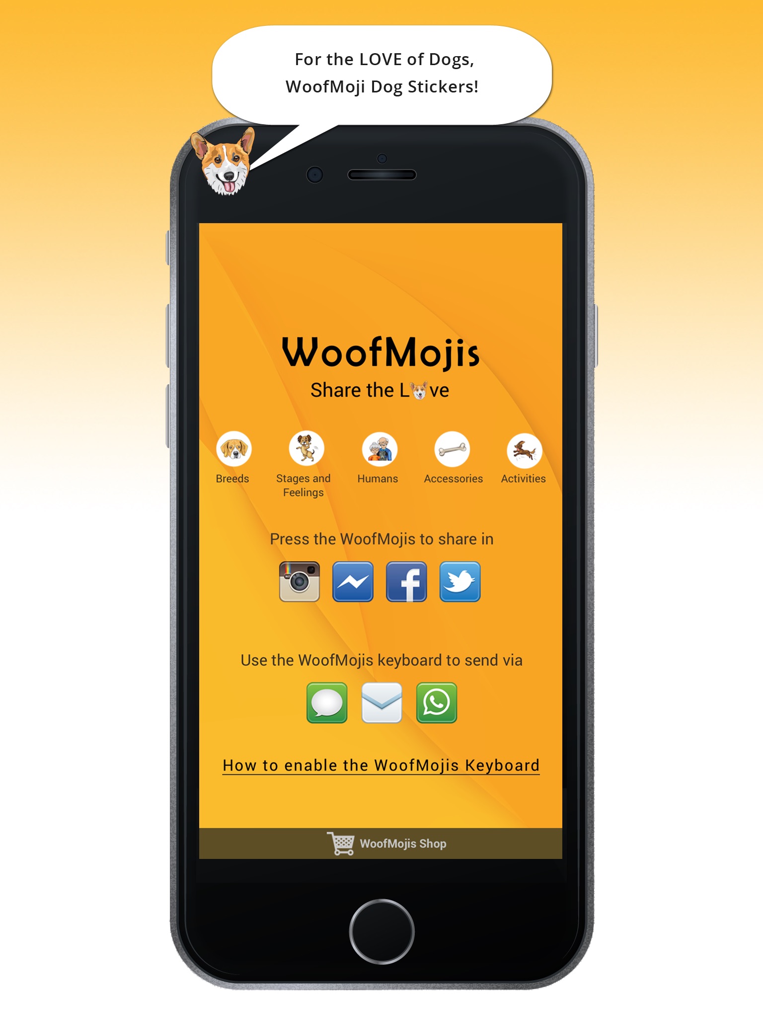 WoofMojis are a variety of fun, cute and interesting dog stickers. Express what is in your mind with a custom avatar WoofMoji keyboard app. If you are a dog lover, share the love of dogs with this friendly dog breeds app. Give expressions to your stages and feeling, add in accessories and enjoy a variety of fun dog activities with dog stickers.