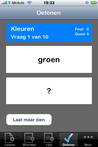 - statistieken per woord/zin worden bijgehouden zodat bij het oefenen de door jezelf slecht beantwoorde woorden/zinnen vaker herhaald worden;