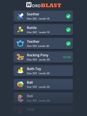 Finish challenging puzzles to elevate your brain power. Join the mind exercise journey and unlock all of the toys! 52 packs, 1000 well-designed puzzles, similar with classic crossword puzzles but more fun!