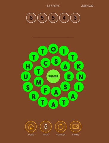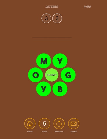 It starts very easy but gets challenging quickly. Tap on the letters to build a word.