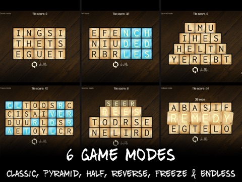 ✓ Freeze mode - some letters are frozen and cannot be moved, test your word knowledge with this mode.