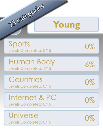 -375 levels in 25 categories and more to come!