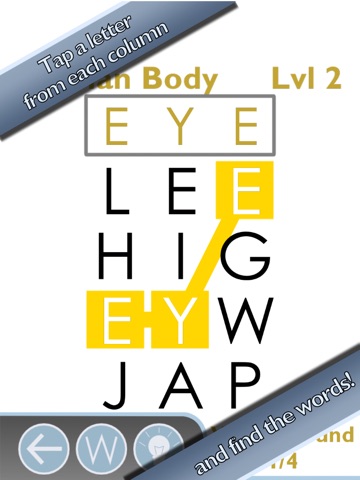 Word Find is a simple, fun and addictive words game for children and adults. The rules are very simple: Tap one letter from each column to find the hidden words. In Word Find there is no time limit or a chance to lose; you just play freely until you find all the words. You can use clues to get some help in those moments where you can´t seem to find a word but use them carefully cause they are limited!